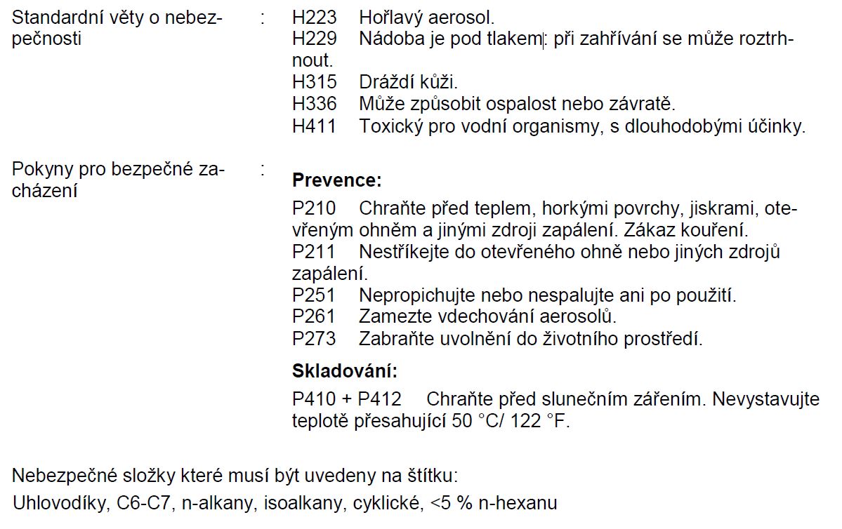 Nestříkejte na horké díly. U povrchů z pryže, plastů a lakovaných povrchů nejprve proveďte na nepohledovém místě test snášenlivosti. Nepoužívejte na čištění svárů.